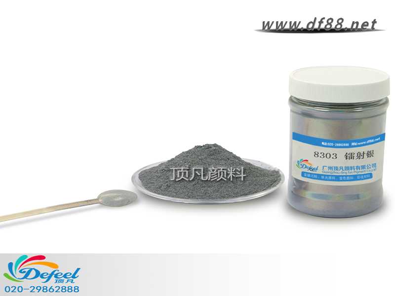 8303 鐳射銀變色龍粉可應用于涂料、油墨、塑料各產業,產品之設計大多以室內(無紫外光之環境)與室外(有紫外光之環境)有顏色變化為訴求。