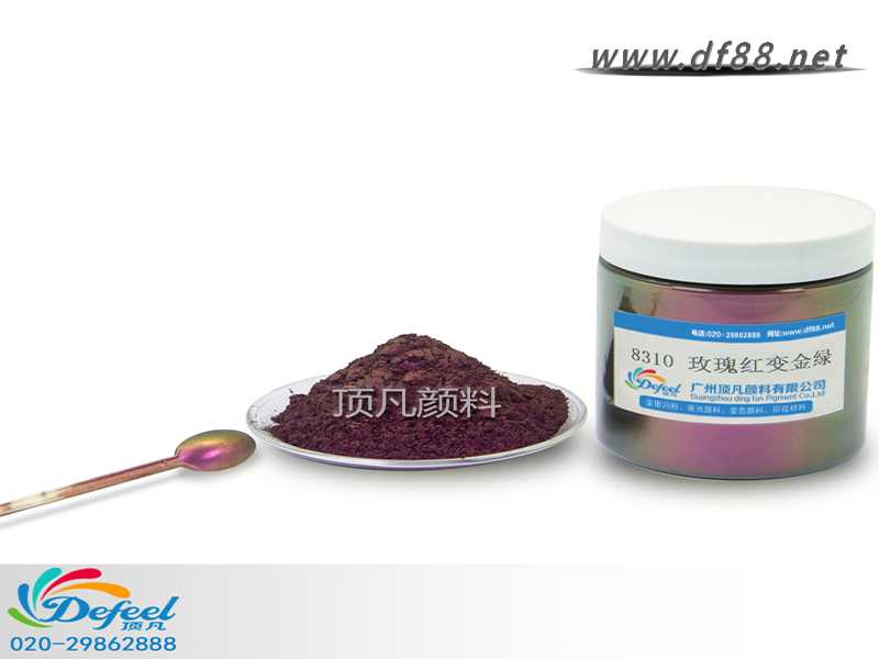 8310 玫瑰紅變金綠變色龍粉可應(yīng)用于涂料、油墨、塑料各產(chǎn)業(yè),產(chǎn)品之設(shè)計大多以室內(nèi)(無紫外光之環(huán)境)與室外(有紫外光之環(huán)境)有顏色變化為訴求。