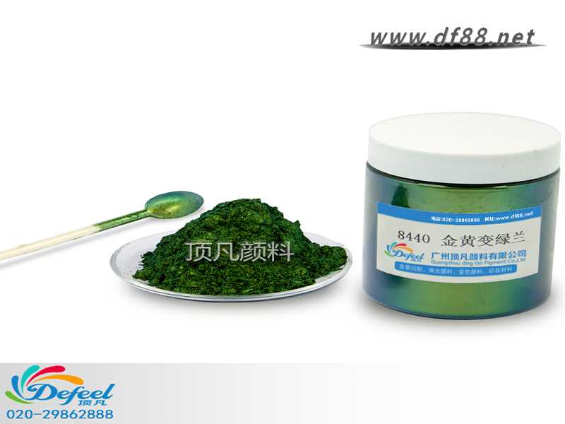 88440 金黃變綠藍變色龍粉可應用于涂料、油墨、塑料各產業,產品之設計大多以室內(無紫外光之環境)與室外(有紫外光之環境)有顏色變化為訴求。